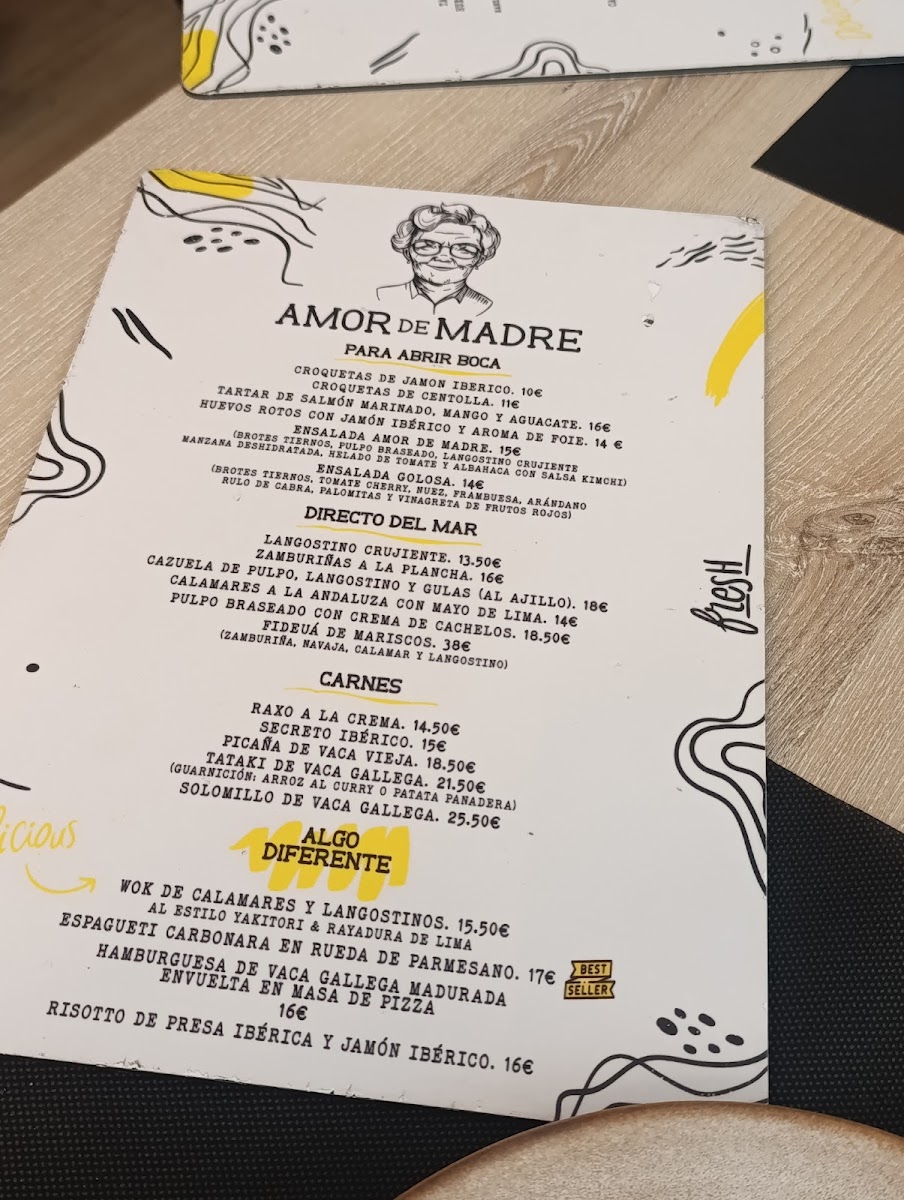 Welcome to Amor de Madre, a culinary gem located in the heart of Pontevedra, Spain, on Rúa Camilo José Cela. This charming eatery invites you into an embrace of nostalgia, reminiscent of a beloved grandmother's kitchen. The warmth of the decor sets the tone for an inviting dining experience, where every dish is prepared with love and care.